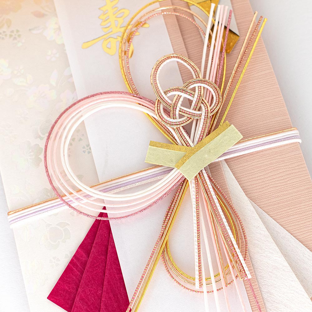 クリスタルレインボー箔押しと華やかな色彩が美しい大人の方向けの寿金封です。