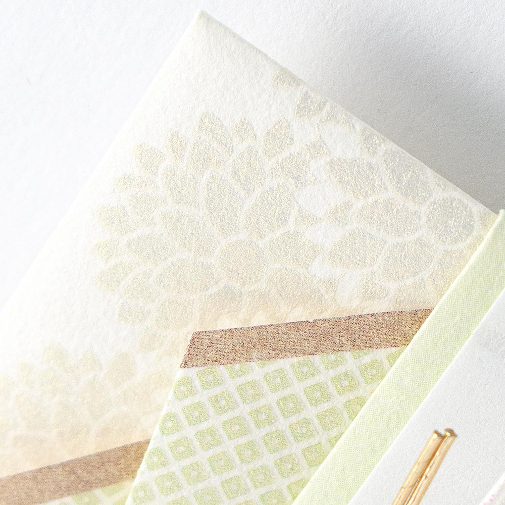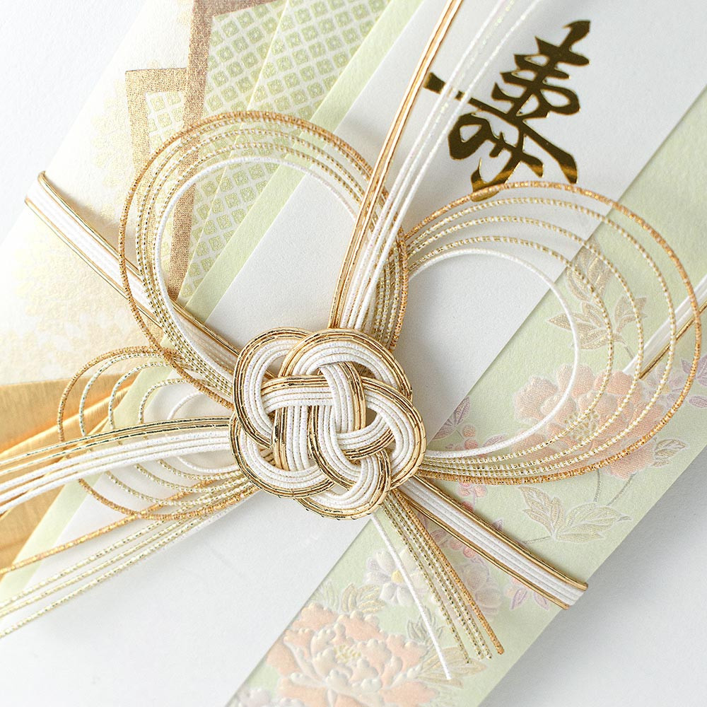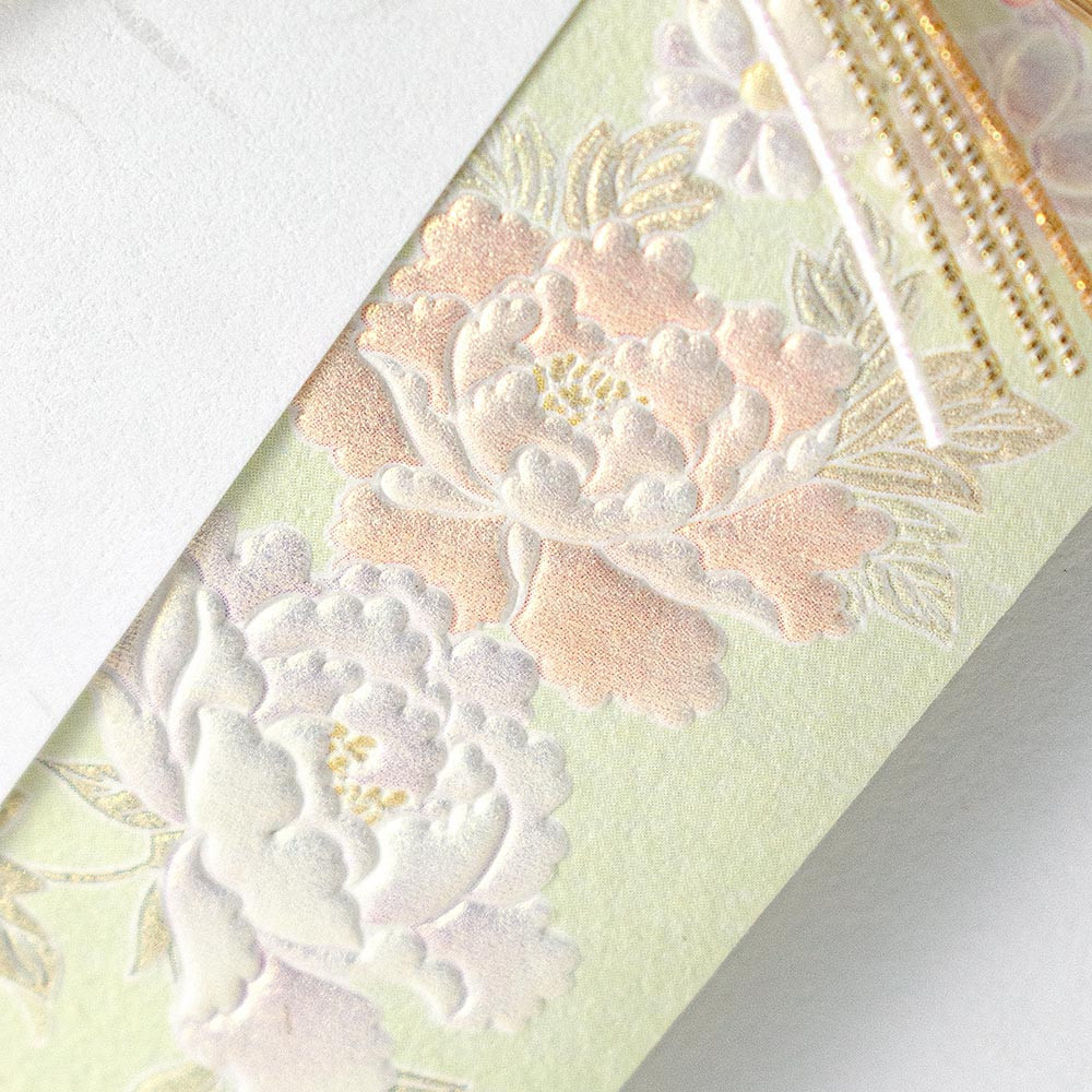 牡丹の花をパールシルク印刷とエンボス加工で上品に表現した寿金封です。