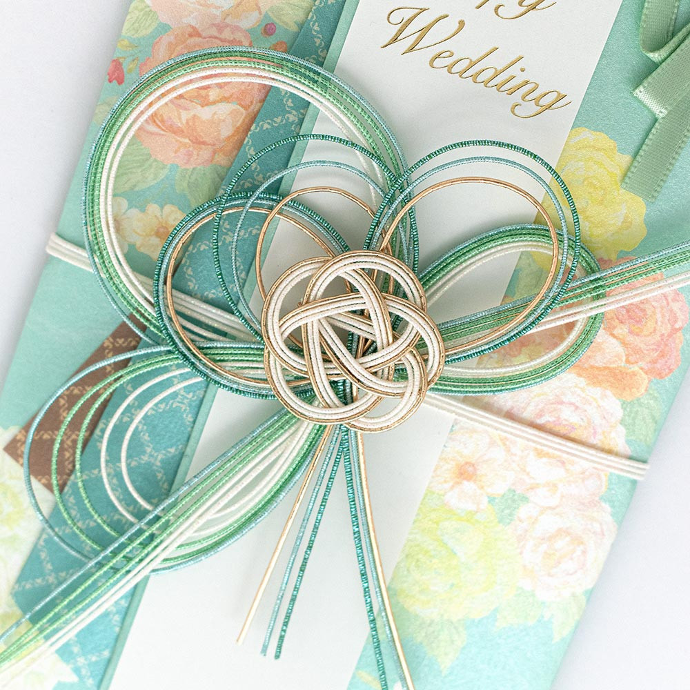 エレガントな花柄デザインの寿金封です。 包む金額の目安は?5万円です。