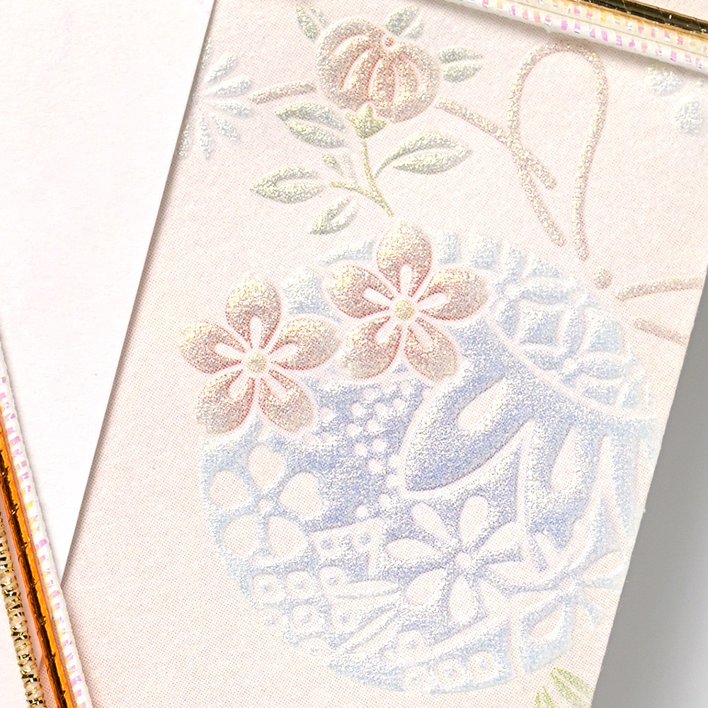 パールシルク印刷の繊細な輝きが、華やかさと優しい印象を与えるデザインです。