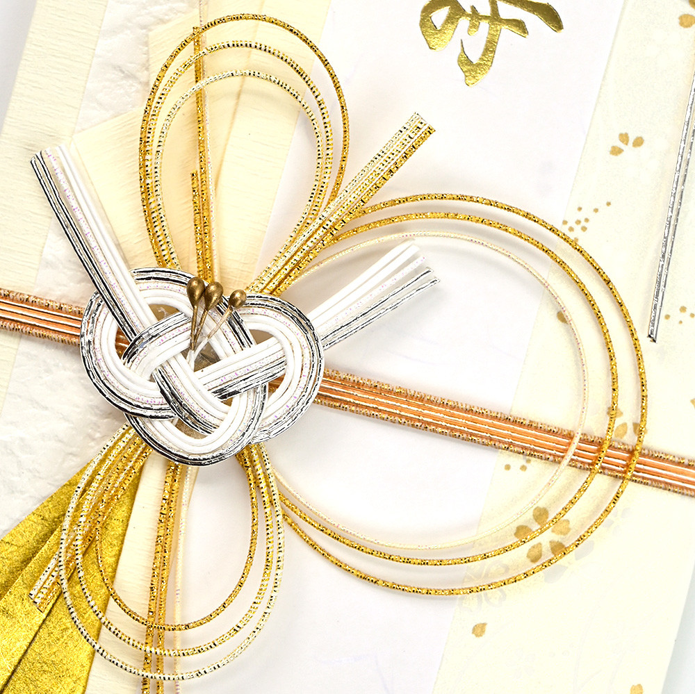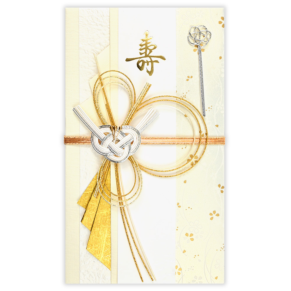 白無垢をイメージしたホワイトが基調の清楚なデザインの寿金封です。