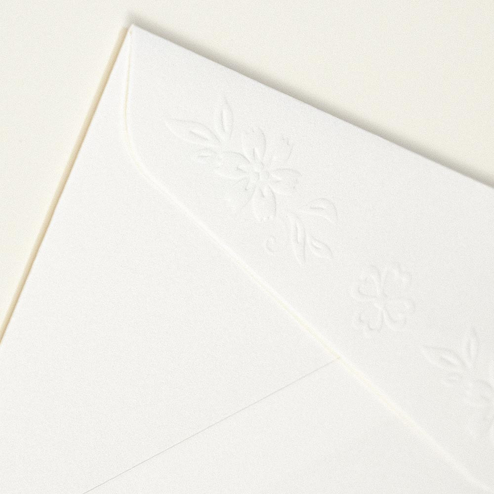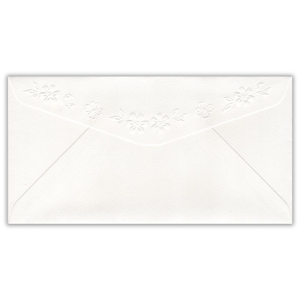 エレガントな花模様のエンボス加工の縁取りが、気品を演出する最高級封筒です。