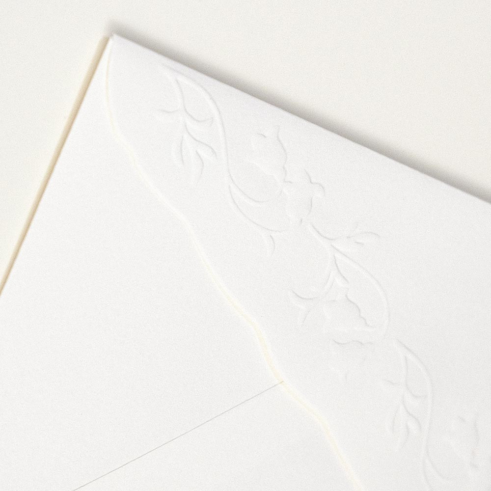 エレガントな花模様のエンボス加工の縁取りが、美しさを演出する最高級封筒です。