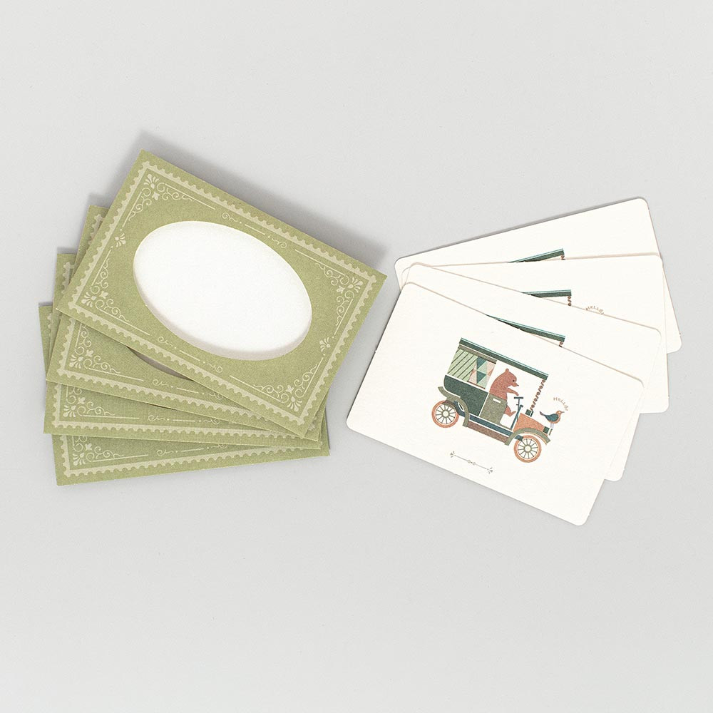封筒の窓からカードの絵柄が覗くメッセージカード。