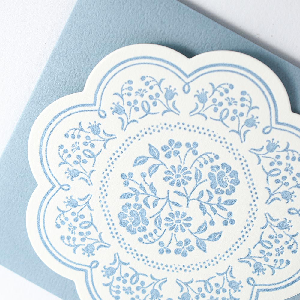 味わい深い活版印刷で表現された、レース風のミニカード。
