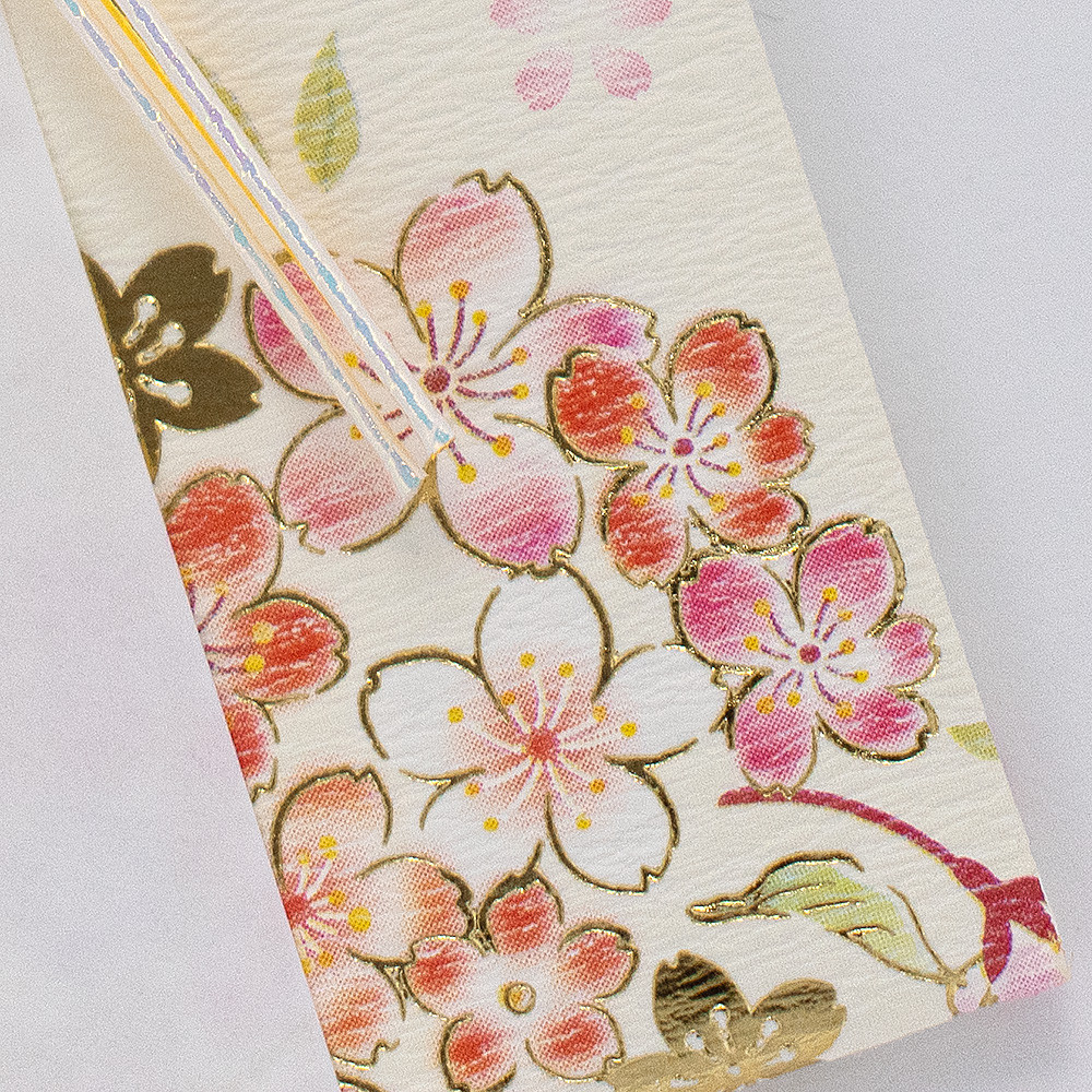 華やかなデザインに金箔押し加工が目を引く、「御祝」祝儀袋です。明るいお花と金箔を使い、華やかな雰囲気に仕上げました。