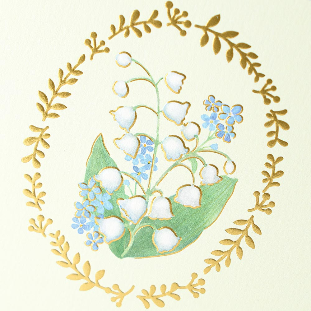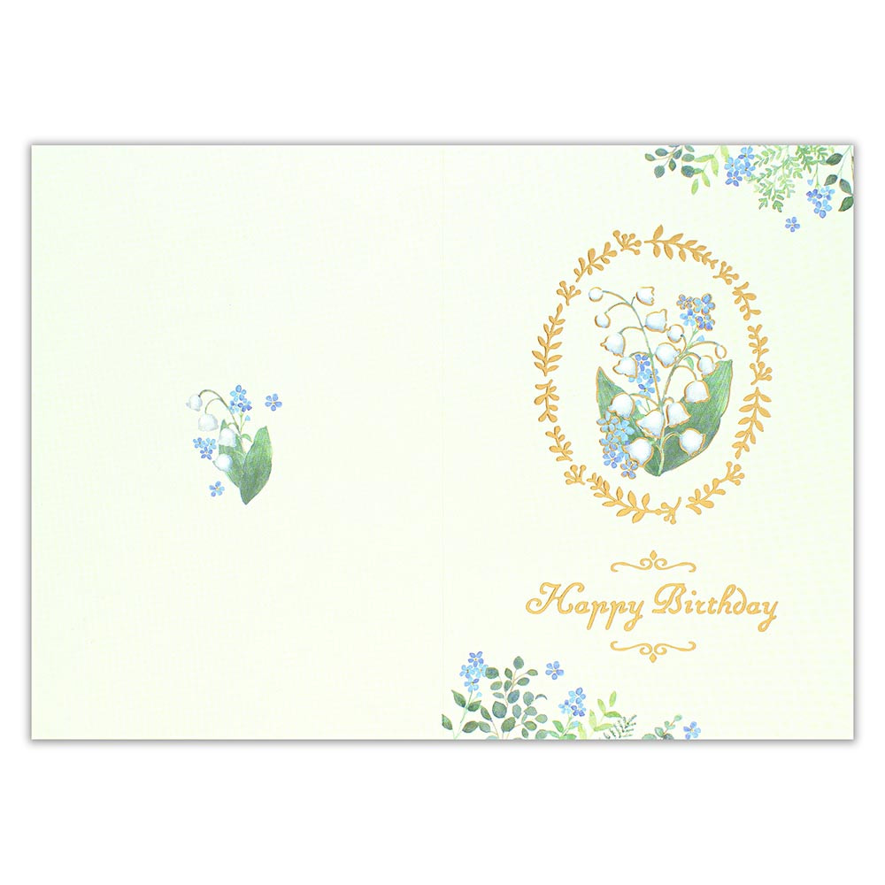 「幸せの再来」の花言葉をもつスズランを水彩タッチで優しく描いたお誕生日カードです。