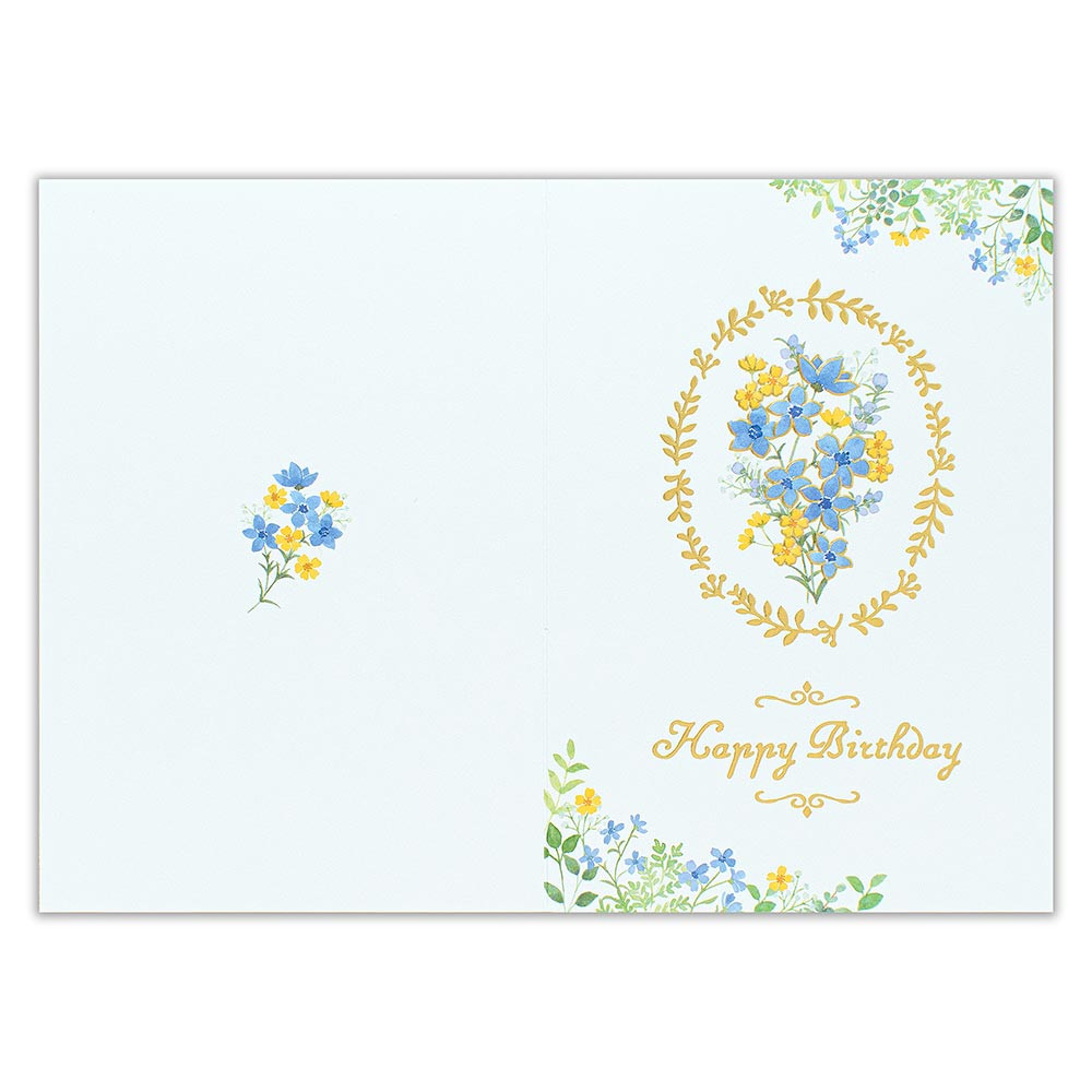「幸福を振りまく人」の花言葉をもつデルフィニウム を水彩タッチで優しく描いたお誕生日カードです。