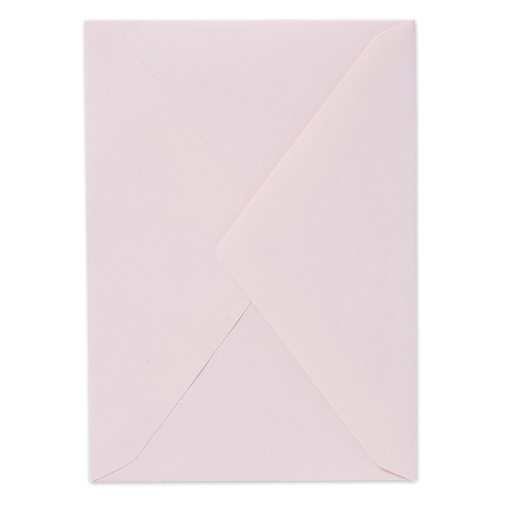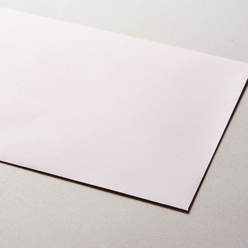 ポストカードが入るサイズの淡い桃色のシンプルな封筒です。