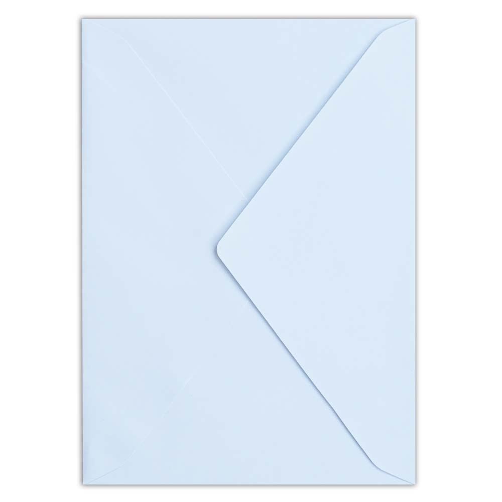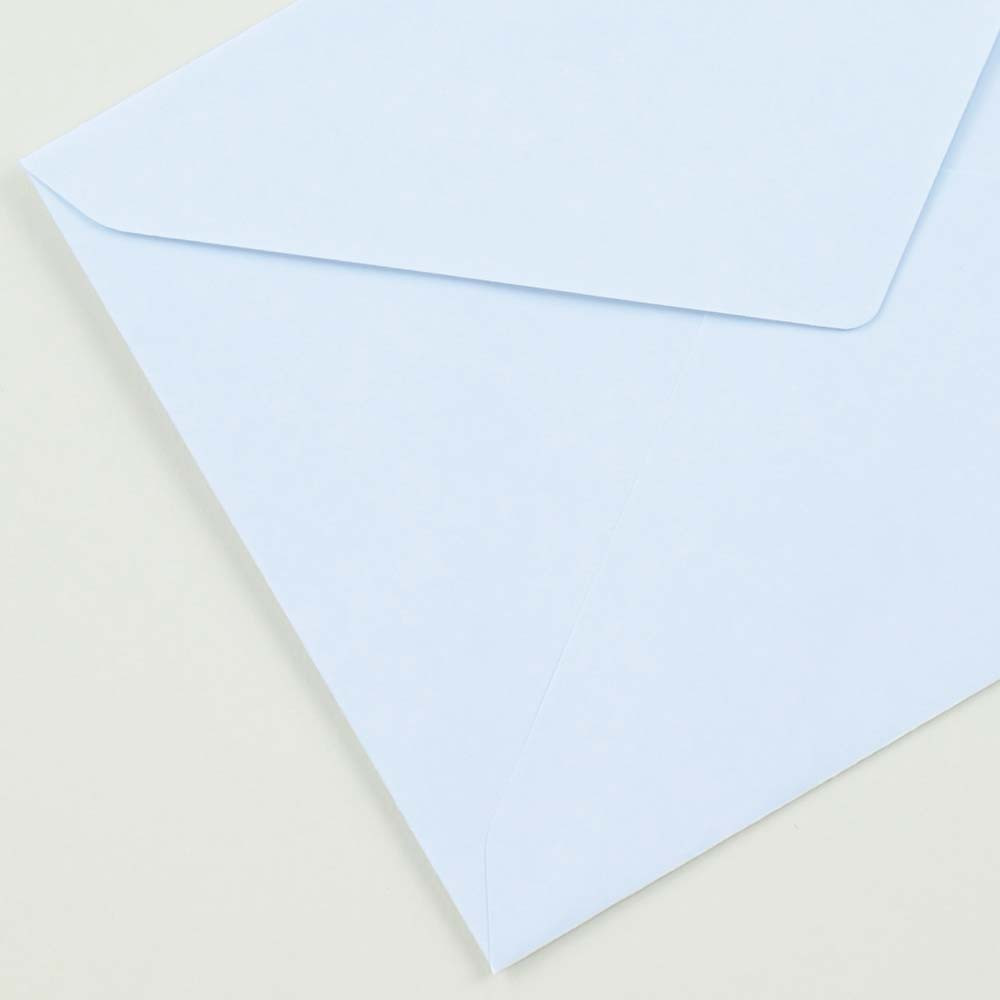 ポストカードが入るサイズの淡い水色のシンプルな封筒です。