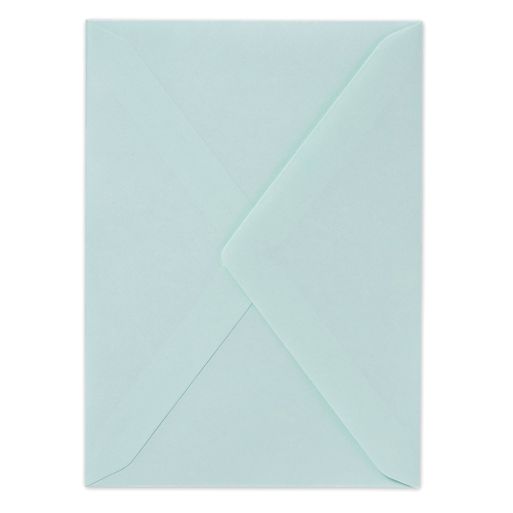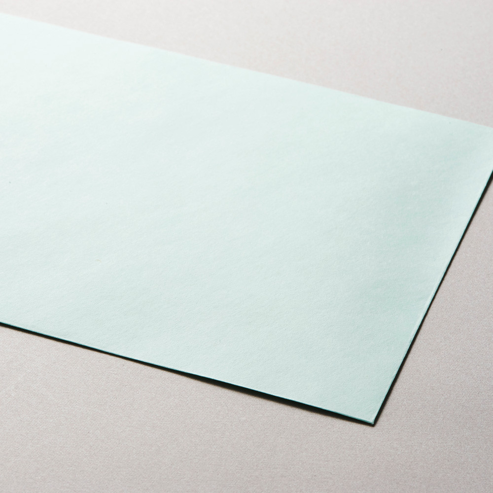 ポストカードが入るサイズの淡い緑色のシンプルな封筒です。